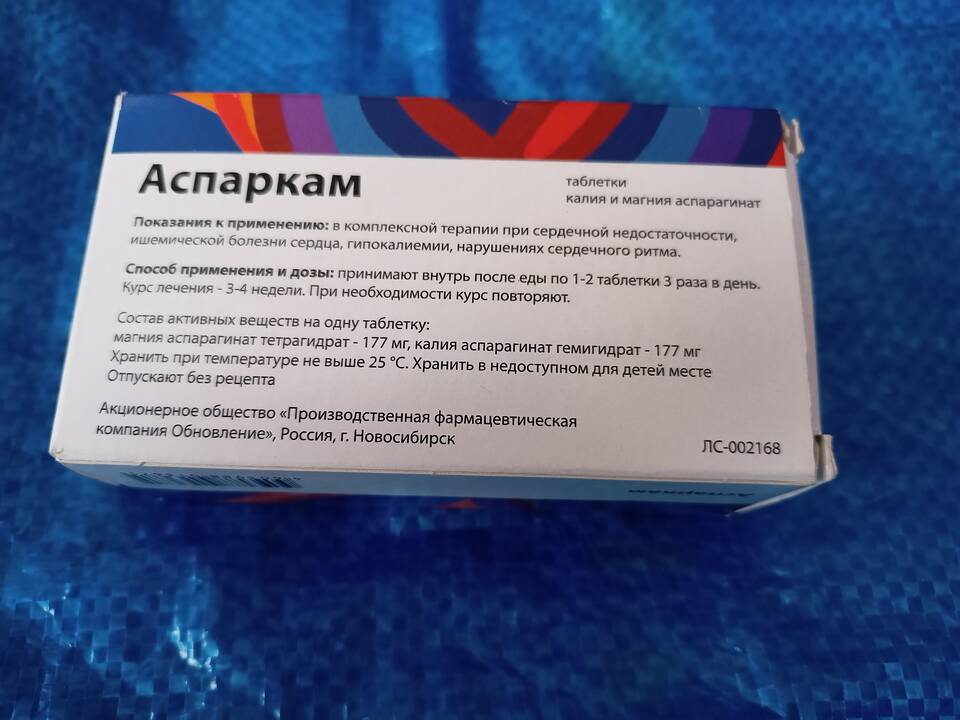 - Действующие вещества: калия аспарагинат и магния аспарагинат