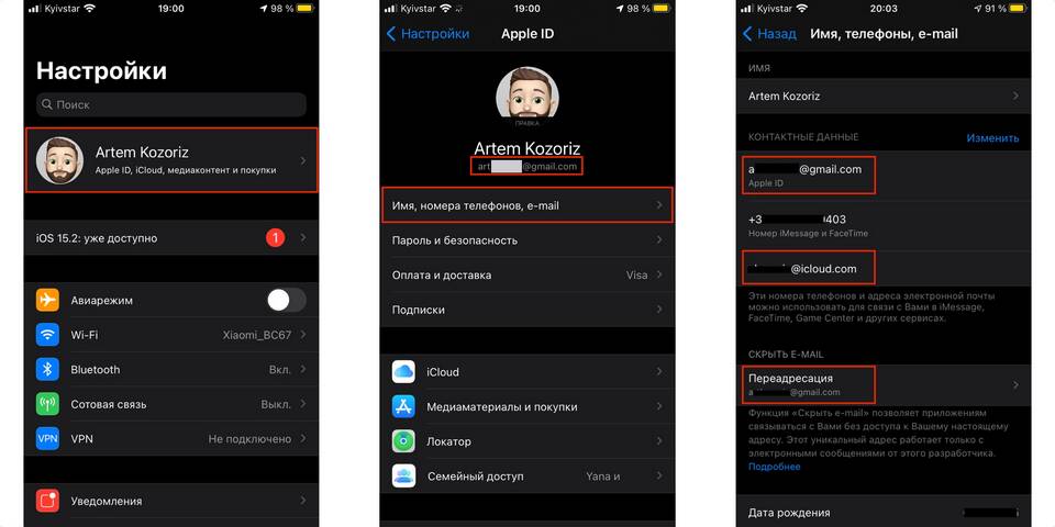 - Нажмите "Имя" и введите новые данные