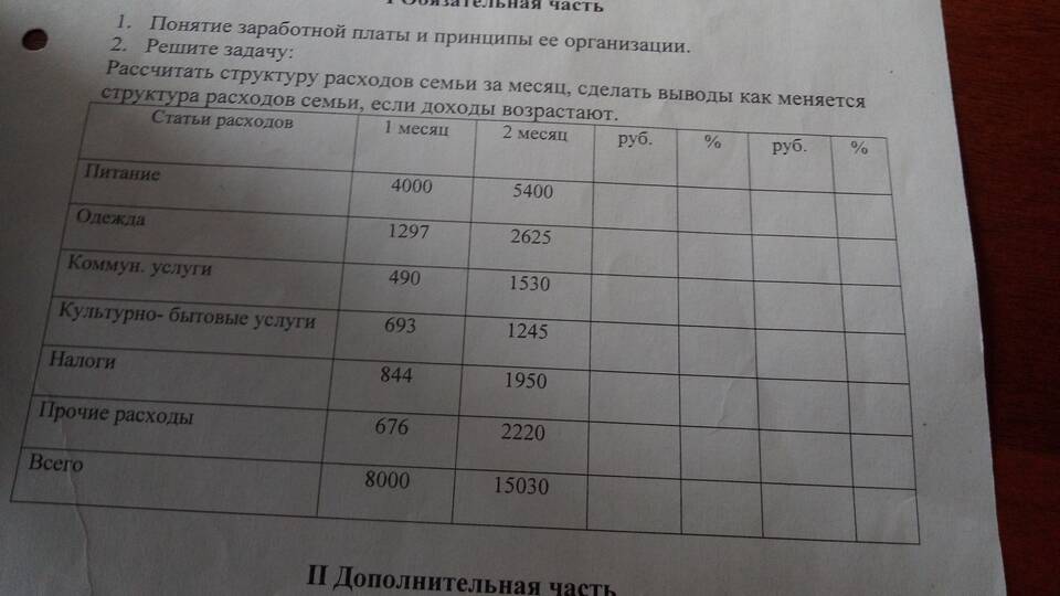 | Обязательные | ЖКХ, кредиты, налоги, связь |