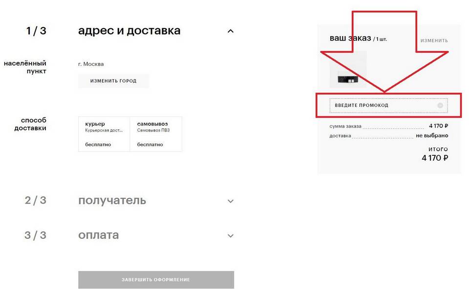 - Перейдите к оформлению заказа