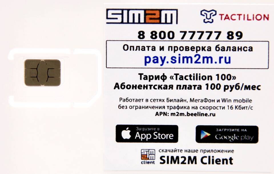| Упаковка SIM-карты | Первоначальный код указан на пластиковой карте-держателе |